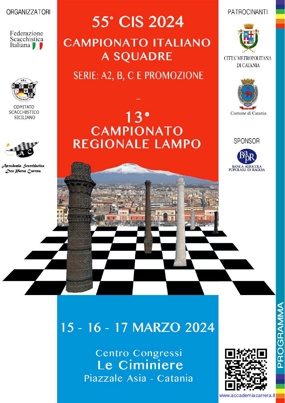 Va inoltre ricordato l’impegno delle nostre squadre maggiori nella serie master che si svolgeranno a Vasto dall’8 al 14 aprile 2024: la squadra maschile e femminile del Pedone Isolano, la seconda dovrà difendere il titolo italiano conquistato l’anno scorso, così come il Circolo Palermitano Scacchi.