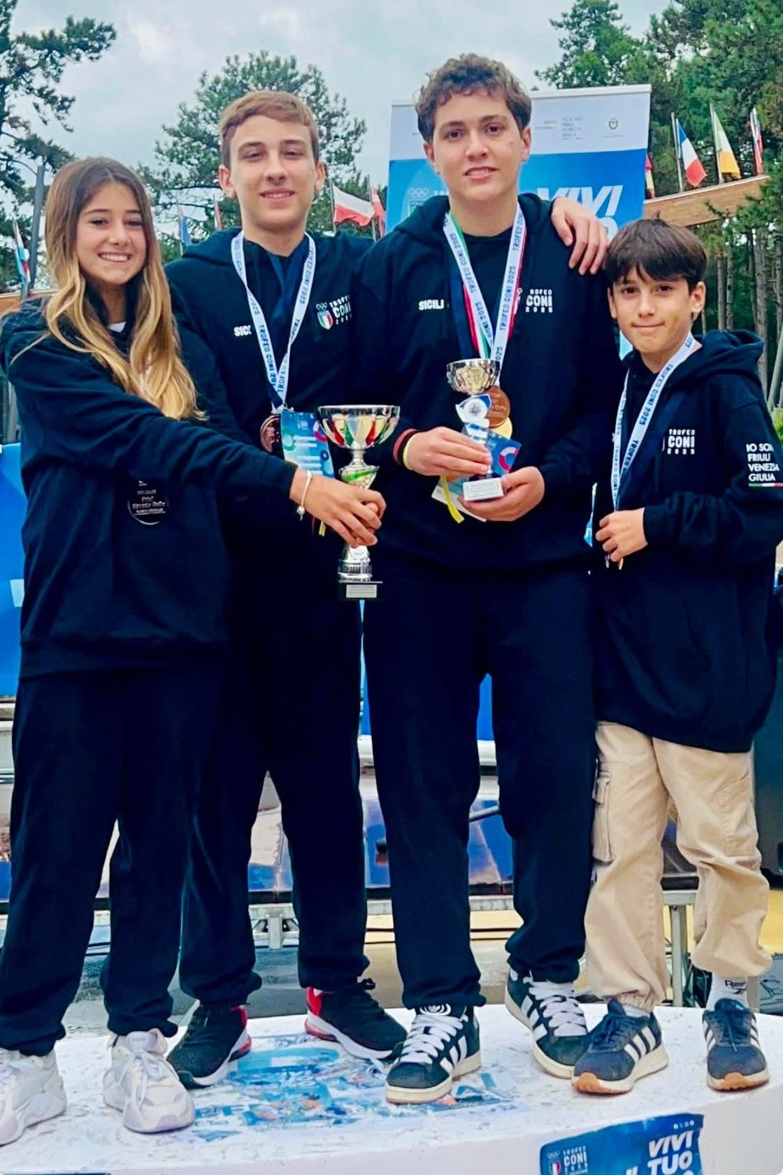 Complimenti alla squadra Siciliana composta da Davide Pulvirenti, Diego Alfò, Umberto Di Fede e Clio Alessi, accompagnati da Eloisa Terzo, che a Lignano Sabbiadoro, si è piazzata al terzo posto, subito dietro la Toscana e la Lombardia. Fatale la sconfitta all’ultimo turno contro la squadra Lombarda, che ci fa giungere sul gradino più basso del podio.