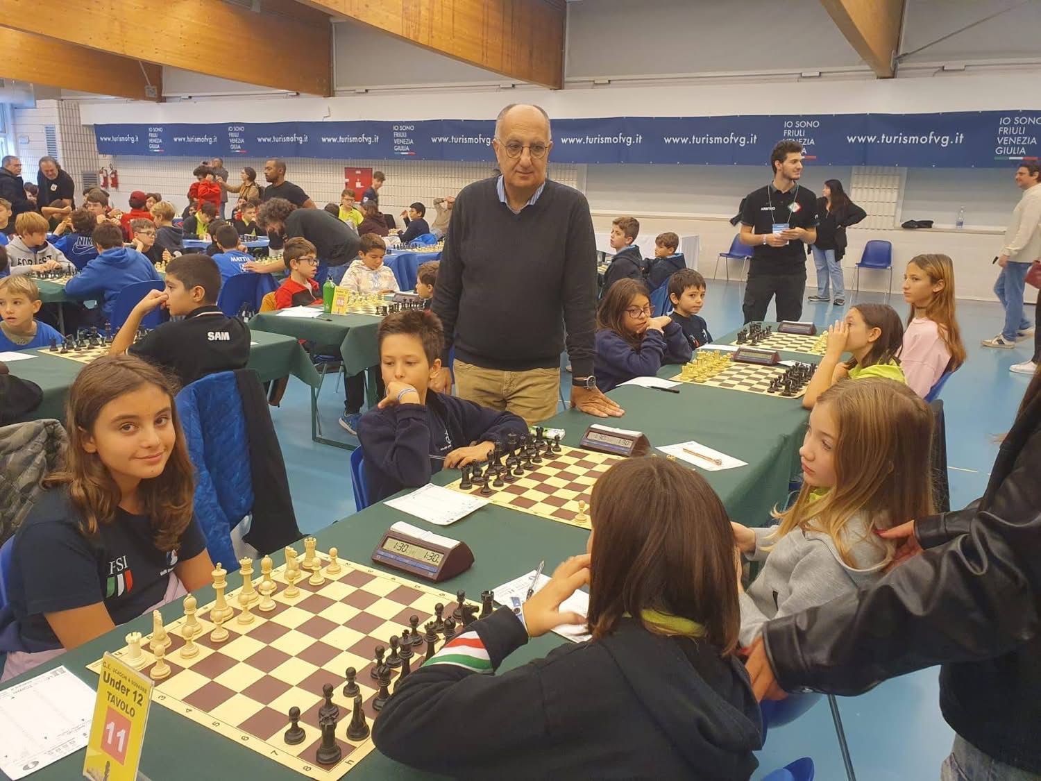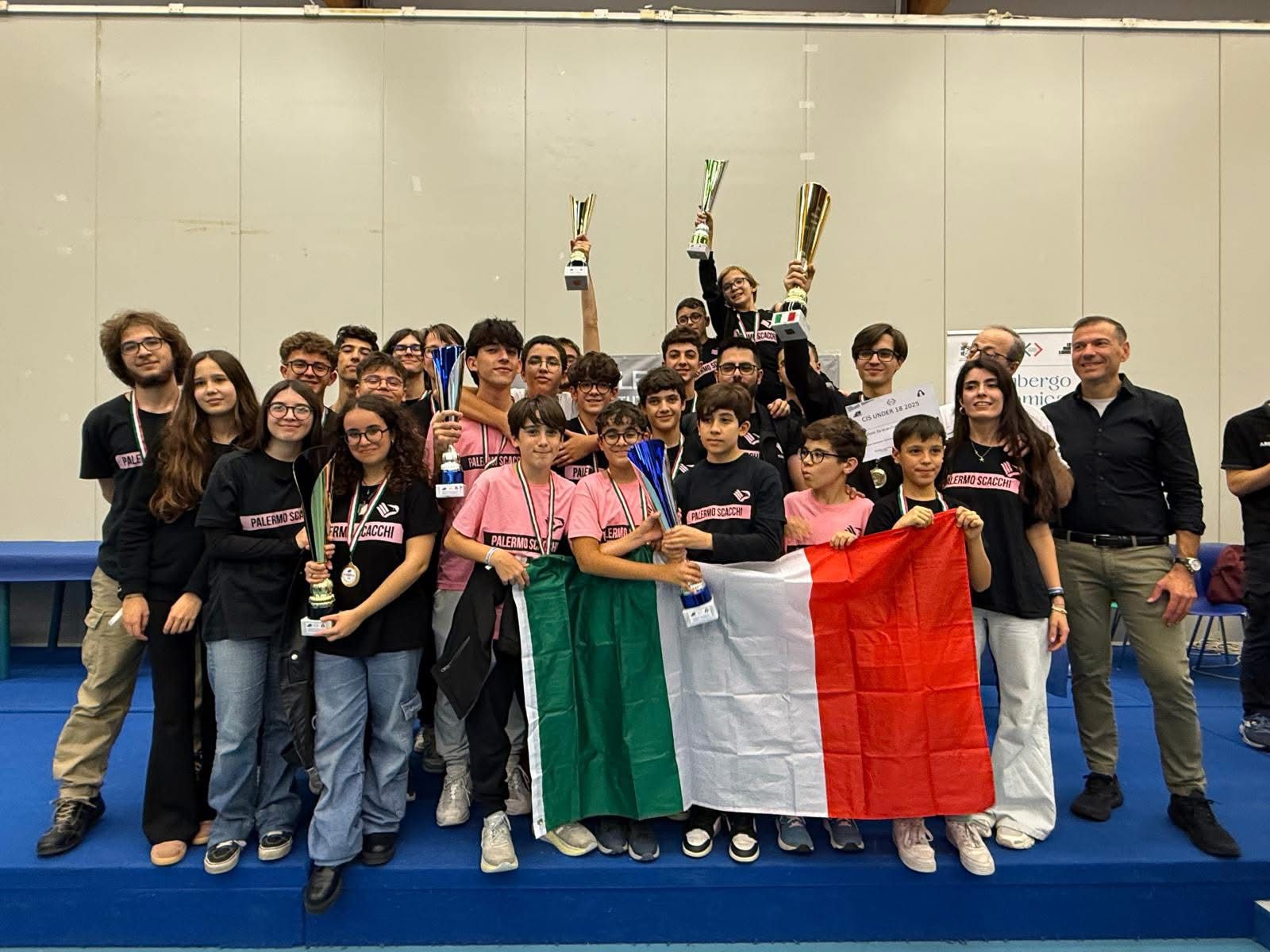 Si sono disputati dal 30 ottobre al 2 novembre a Lignano Sabbiadoro, le fasi nazionali del Campionato Italiano a Squadre under 18. Ben 17 le squadre provenienti dalla Sicilia, ma andiamo con ordine: Le squadre campioni d’Italia sono PALERMO SCACCHI UNDER 12 (Mauro, Serio, Di Fede, Lipani, Ruffino), PEDONE ISOLANO UNDER 12 FEMMINILE (Monte, Schicchi, Librizzi, Cannella), PALERMO SCACCHI UNDER 16 (La Barbera, Noto, Geraci, Blanda, Zerilli), PALERMO SCACCHI UNDER 16 FEMMINILE (Ciraulo, Gervasi, Lipani, Serio), PALERMO SCACCHI UNDER 18 (CinΓ , Zoncu, Verga, Catanzaro, Gervasi). Ottimi piazzamenti per PALERMO SCACCHI UNDER 10 (Riggio Di Fiore, Lo Manto, Castelli, Pisciotta, Nicosia) seconda classificata, PEDONE ISOLANO UNDER 12 (Picone Chiodo, Sposito, Finocchio, Neri, Morello) terza classificata, PALERMO SCACCHI UNDER 14 (Faldetta, Dominici, Ciraulo Basilio, Viscuso) seconda classificata .